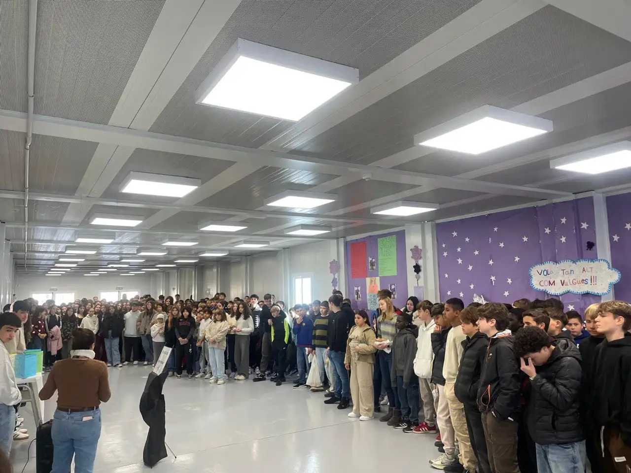 Volem felicitar l’alumnat pel seu bon comportament durant l’acte, així com per la creació dels símbols de pau, menús de la justícia, redacció i lectura de poemes i del manifest per la pau.