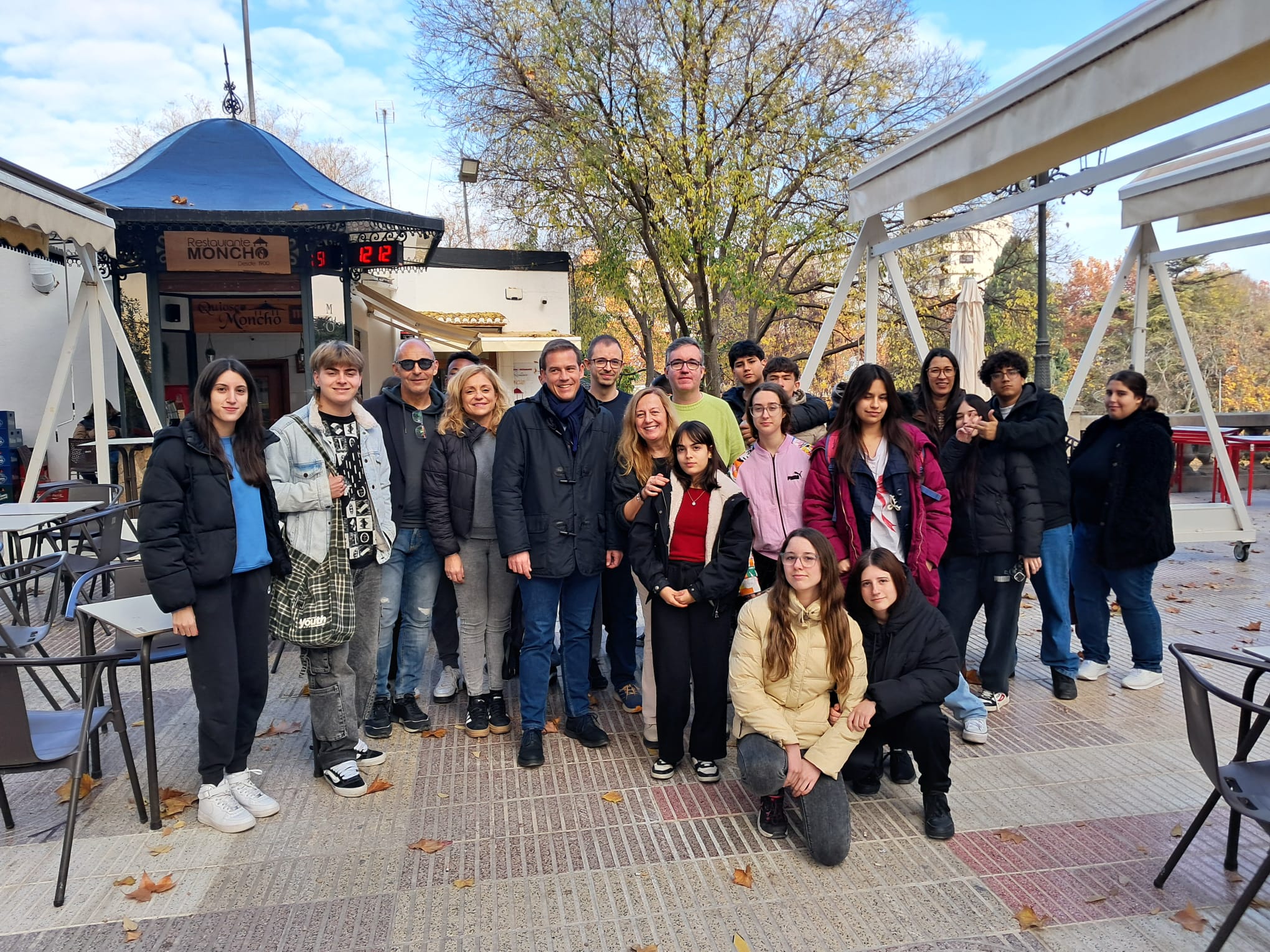 El moment més sorprenent de la jornada va arribar durant l’esmorzar al bar Moncho, quan l’Alcalde de Xàtiva, Roger Cerdà, va fer acte de presència per compartir una estona amb els alumnes.