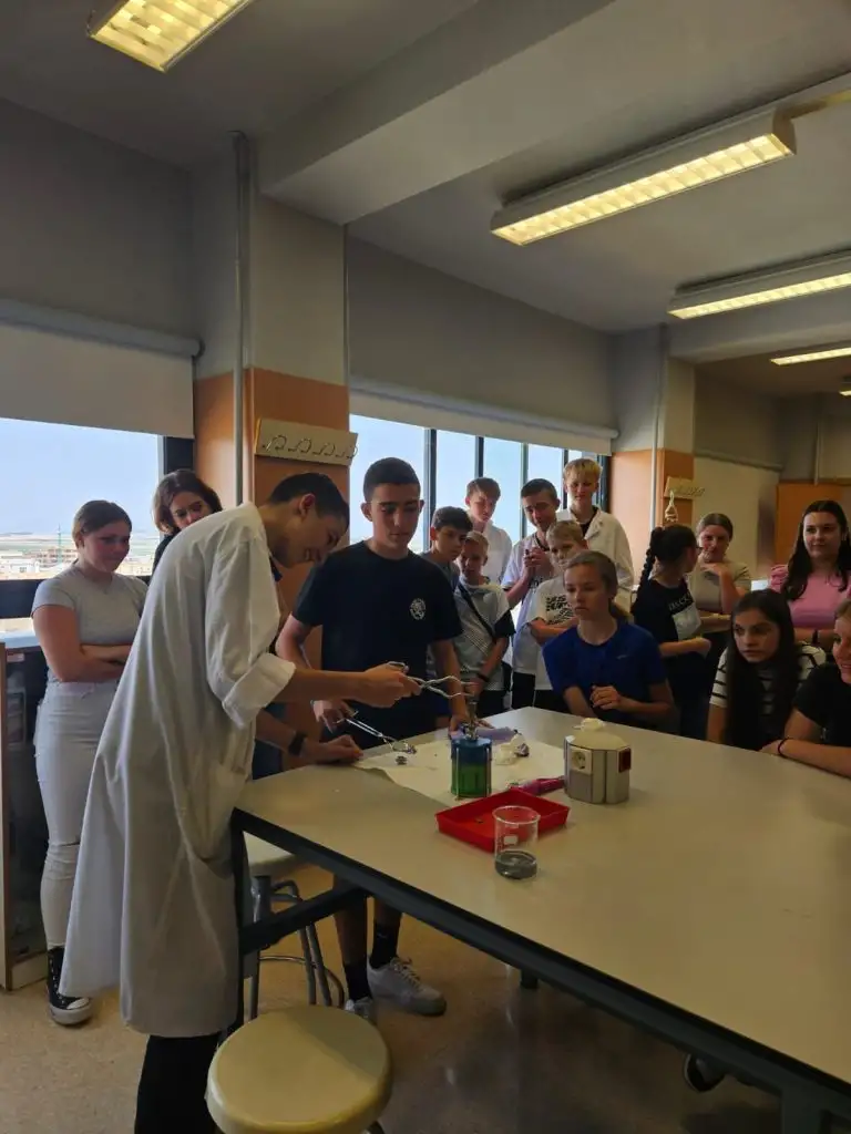 Tuvimos el taller de Geografía con Gabriel, clase de Plástica con Olga y Patricia; y por último unos fantásticos experimentos en el laboratorio de la mano de Sergio y Marta. El alumnado han disfrutado mucho de las actividades y han terminado de estrechar lazos entre las dos escuelas. Finalmente, les hemos despedido con un pequeño obsequio de la mano de Miguel, nuestro director, y les hemos deseado un buen viaje de vuelta a su ciudad. Gracias amig@s por vuestra visita! Esperamos volver a colaborar próximamente!
