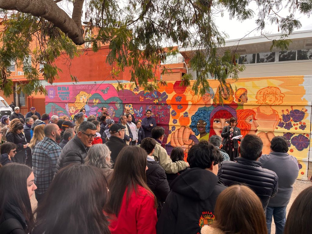 Este mural ha sido pintado por el alumnado del IES Manuel Sanchis Guarner y el Centro Ocupacional TOLA con la colaboración de la Casa de la Mujer de Silla y el ayuntamiento de Silla.