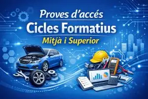 - ❗ Proves accés cicles Mitjà i Superior 2026-2027Ja teniu disponible la informació sobre les proves d’accés als cicles formatius de grau mitjà i grau superior per al curs 2026-2027. El termini d’inscripció serà del 23 al 31 març.