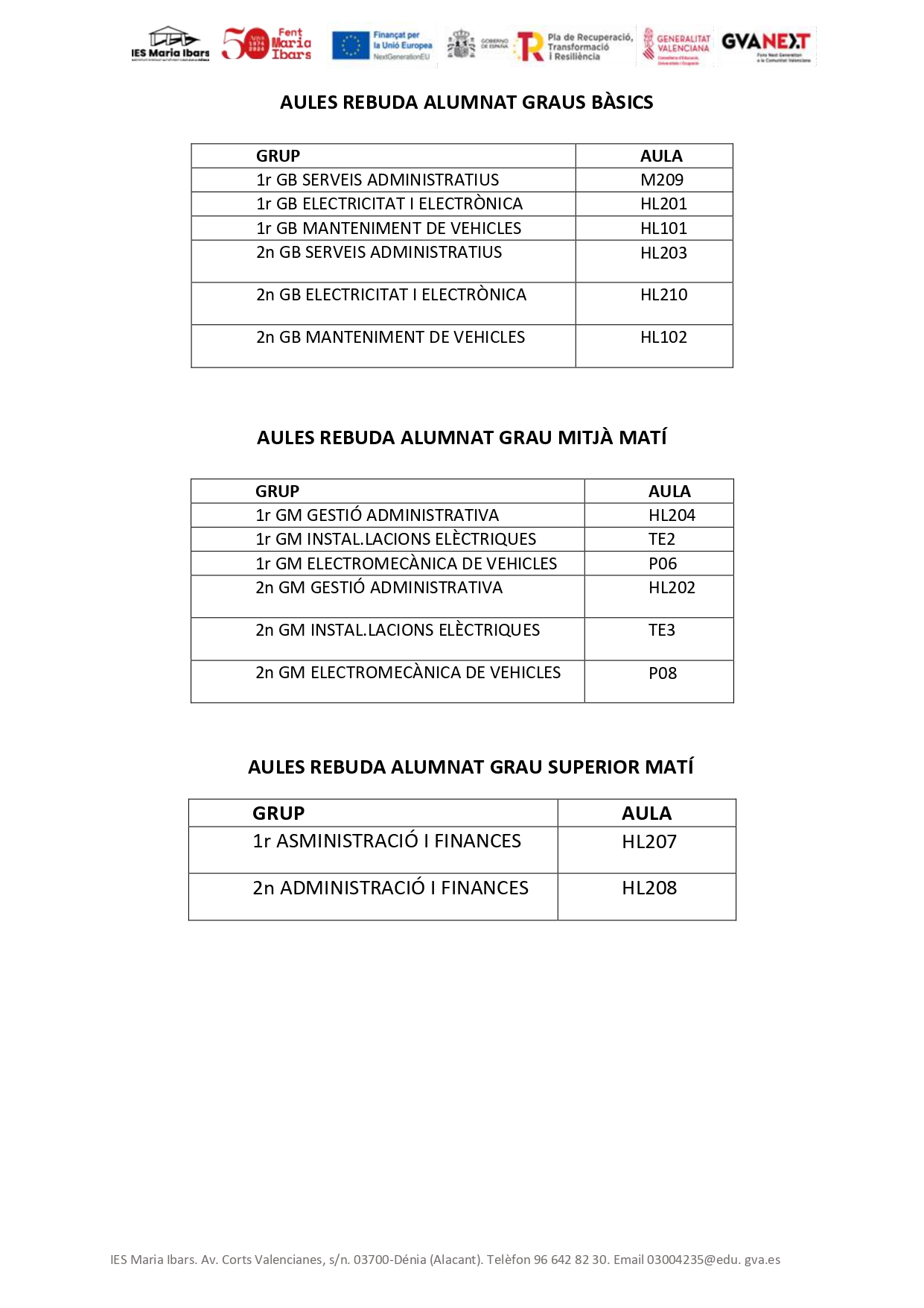 - 2n i 3r Grau Mitjà i Superior cicles vespertí i nit (Aula)