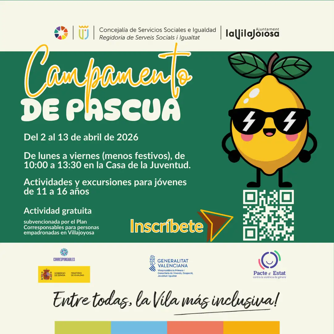 Actividad gratuita subvencionada por el Plan Corresponsables del Ministerio de Igualdad para las personas empadronadas en Villajoyosa. Imprescindible estar empadronado/ada en la Vila Joiosa.Inscripciones aquí: