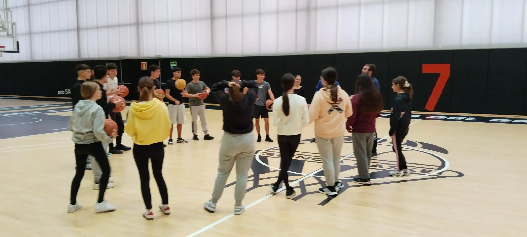 Una de les activitats més esperades va ser la sessió d’entrenament, que va durar aproximadament una hora i va comptar amb la participació d’un entrenador del club València Bàsquet. L’alumnat va poder posar en pràctica diferents tècniques de joc, aprendre noves habilitats i experimentar en primera persona el dia a dia d’un esportista professional. Aquesta experiència pràctica no només els va permetre entendre millor les exigències i la disciplina que requereix el bàsquet, sinó que també els va motivar a explorar possibles carreres relacionades amb l’esport i la salut.