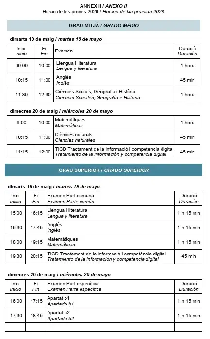 - Proves de Grau Mitjà: tindre 17 anys d’edat o complir-los durant l’any 2026.