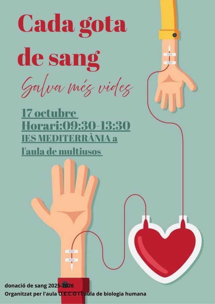 Els alumnes i alumnes de 1r de Batxillerat de la matèria de Biologia Humana han organitzat una nova campanya de donació de sang, amb la il·lusió de contribuir a salvar vides i fomentar la solidaritat en la nostra comunitat educativa.