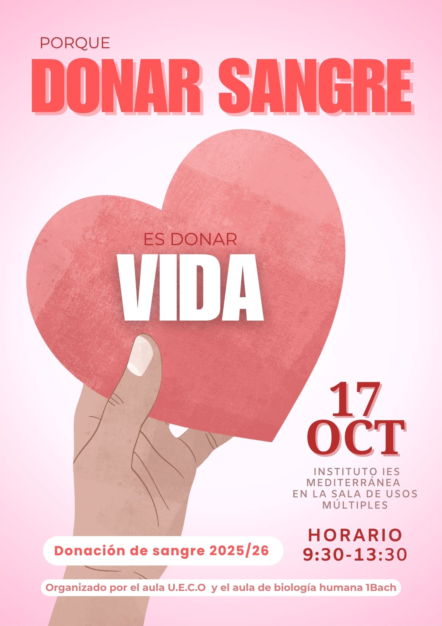 Los alumnos y alumnas de 1.º de Bachillerato de la materia de Biología Humana han organizado una nueva campaña de donación de sangre, con la ilusión de contribuir a salvar vidas y fomentar la solidaridad en nuestra comunidad educativa.