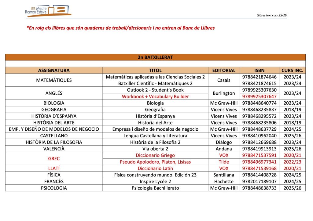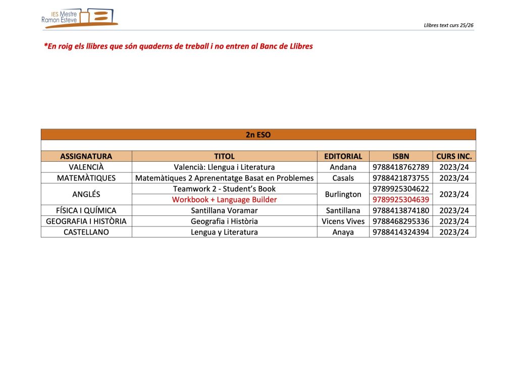 El 31 de març de 2025 es publicaran en el tauler d’anuncis del centre actual les llistes provisionals d’alumnat adscrit i no adscrit.