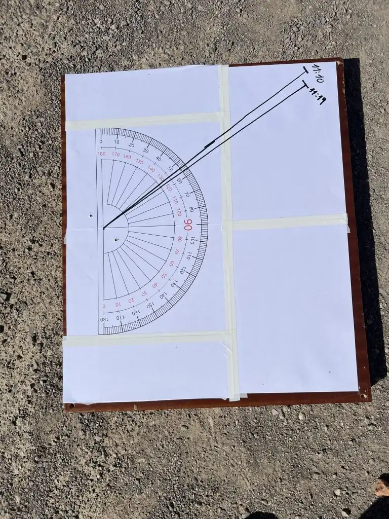 La diferència entre l’experiment clàssic radica en el fet que no mesurarem l’ombra exactament a l’hora en què es produeix l’equinocci, per la qual cosa necessitem una referència respecte al nord (ens indica la direcció del meridià), per a realitzar correccions en la mesura.