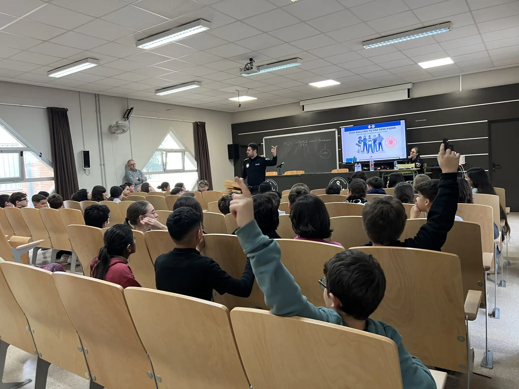 L’alumnat de 1r d’ESO ha participat en una sessió informativa del programa ComunicaJove!, una iniciativa de la Policia Local i la Unitat d’Agent Tutor centrada en la prevenció de l’assetjament escolar i la millora de la convivència. Durant la xarrada, l’alumnat ha conegut eines i recursos per a detectar, prevenir i actuar davant situacions de bullying i ciberassetjament, fomentant el respecte, l’empatia i la comunicació. Escoltar, acompanyar i prevenir és tasca de tots. Continuem treballant per un centre segur i compromès amb el benestar del nostre alumnat. #ComunicaJove #ConvivenciaEscolar #Prevenció #ESO #EducaciónEnValores