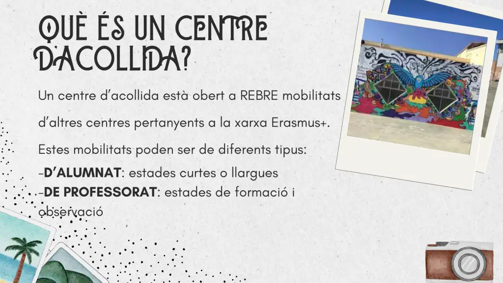 Acollir un/a estudiant Erasmus+ és una oportunitat única per a: ✨ Conéixer altres cultures ✨ Practicar idiomes ✨ Compartir valors europeus ✨ Obrir el nostre institut i les nostres llars a Europa