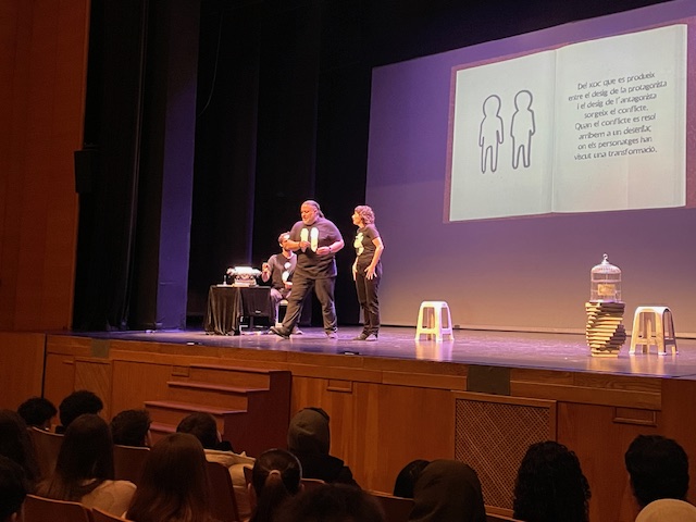 La companyia Teatre de Caixó ha tornat a captivar el nostre alumnat de 4t de l’ESO, ja ho va fer l’any passat, i és que l’elenc d’aquesta companyia de teatre sap com fer-nos viatjar cap a la imaginació i sense haver d’alçar-nos del pati de butaques de l’Auditori de Vila-real.