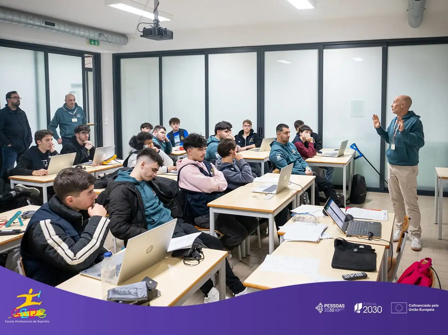 Por otro lado, el alumnado de grado medio de Instalaciones de Telecomunicaciones, también acompañados por dos profesores uno de ellos de Job Shadowing estarán en Portugal visitando Espinho.