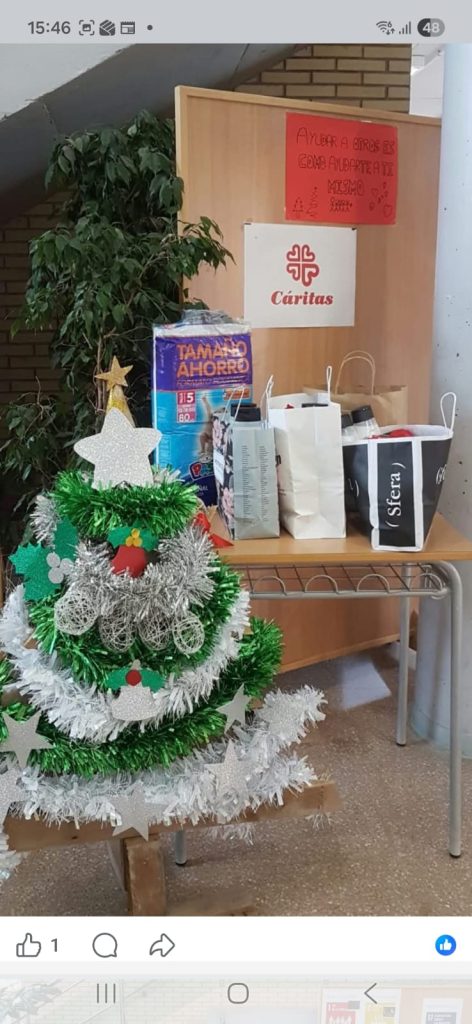 En l’IES PACO RUIZ ja tenim muntat el Betlem en l’hall del centre. A més, un altre any més podem col·laborar amb Càritas de Bigastro i ajudar als que més necessiten. Enguany podem aportar menjar, i especialment productes d’higiene i de bebés. Estarem rebent ajudes fins al divendres 19 de desembre.
