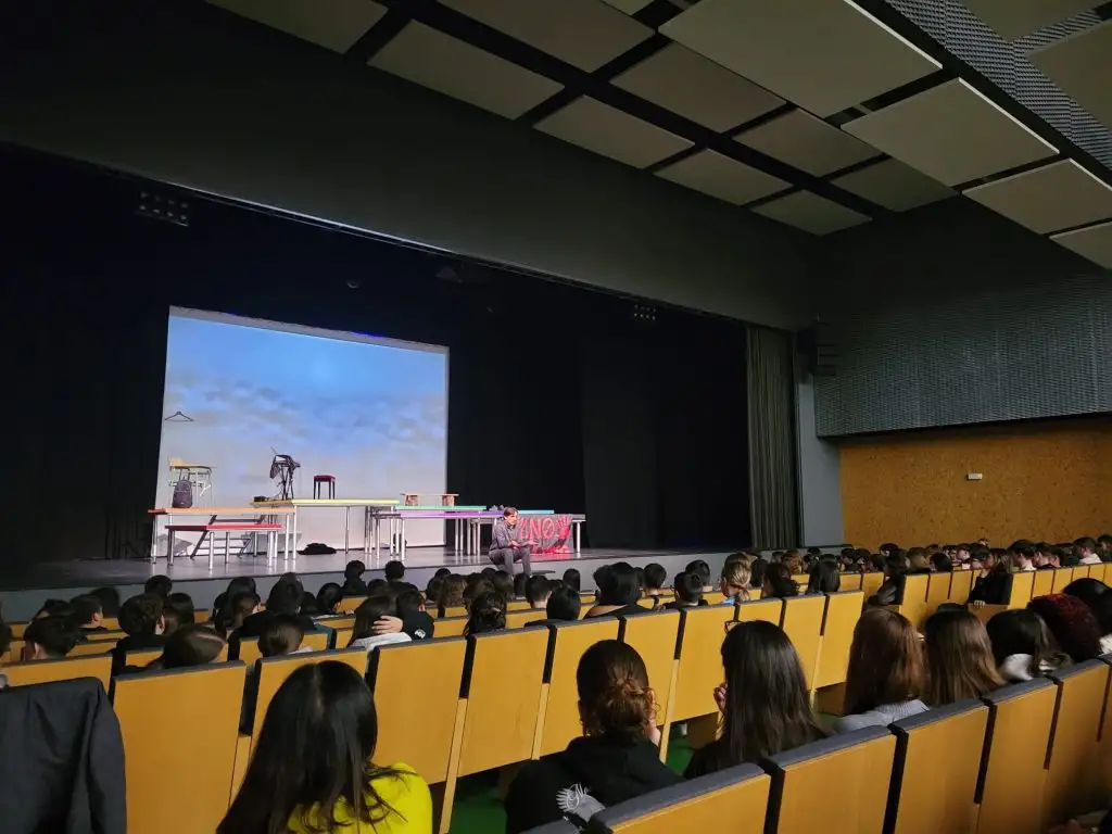 Coincidiendo con el Día mundial del teatro, el viernes 27 de marzo todo el alumnado de 2º, 3º, 4º de ESO y Ciclos ha asistido a una conmovedora representación teatral de la obra Catarsi, contra el acoso escolar, en el espacio cultural La Pista de Pedreguer.