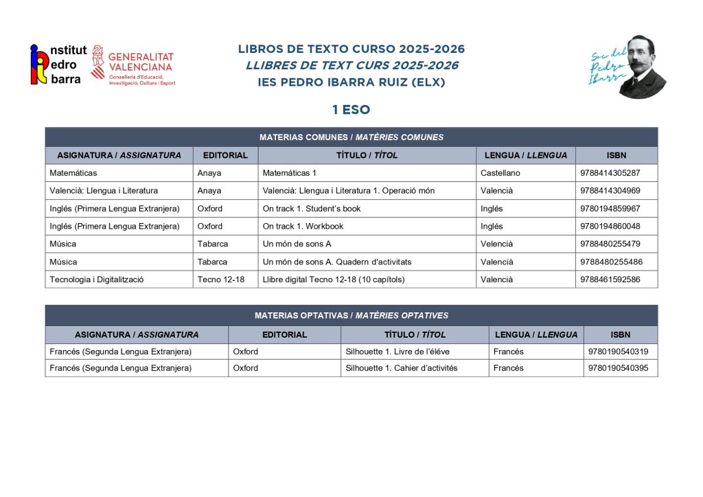 Libros de texto curso 2025-2026