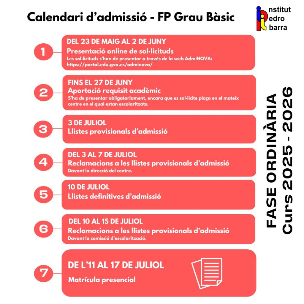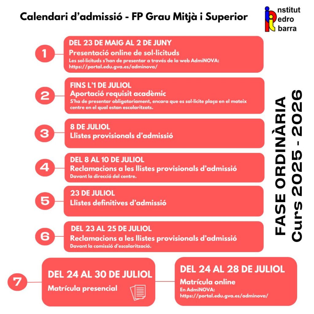 Més informació sobre l’admissió: https://ceice.gva.es/va/web/admision-alumnado/inicio
