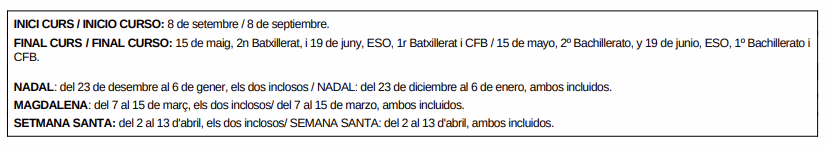 D’acord amb l’ordre de calendari escolar de la Conselleria d’Educació, els dies festius i períodes vacacionals del curs 2025/2026 per a la ciutat de Castelló de la Plana són els següents: