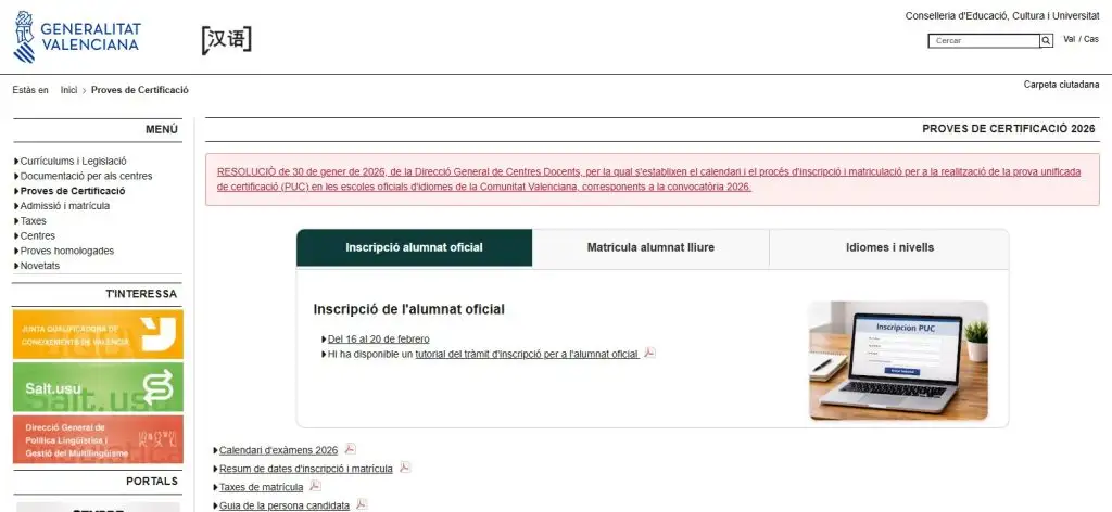 Si vols certificar el teu nivell de valencià, anglés, francés o qualsevol de les llengües que s’imparteixen a les Escoles Oficials d’Idiomes pots informar-te de les proves unificades de certificació (PUC) en este enllaç.