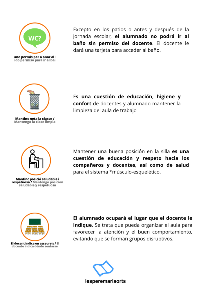 En el aula se prestará especial atención a las siguientes normas: