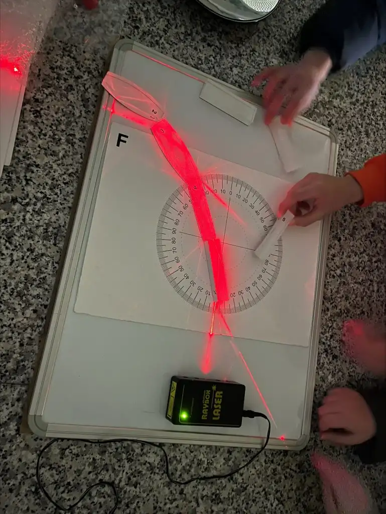 Aquest curs, l’alumnat de 4t d’ESO i de 1r i 2n de Batxillerat ha tingut l’oportunitat de participar en unes pràctiques de laboratori de Física i Química realment experimentals i engrescadores. A través de dos materials didàctics guiats —la maleta d’Òptica Geomètrica i la maleta dedicada a Interferència i Difracció de la Llum— els alumnes han pogut observar i comprovar de primera mà fenòmens fonamentals de la física de la llum.