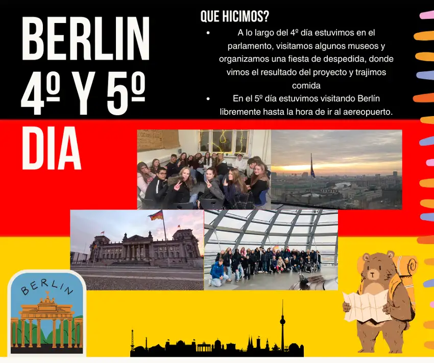 Sin duda, la experiencia Erasmus+ en Berlín ha sido inolvidable para todo el alumnado participante. Se llevan nuevos aprendizajes, amistades y recuerdos que van más allá del ámbito académico. Este viaje les ha permitido crecer, abrir la mente y sentirse parte de una Europa diversa y cercana, dejando una huella que perdurará en el tiempo.