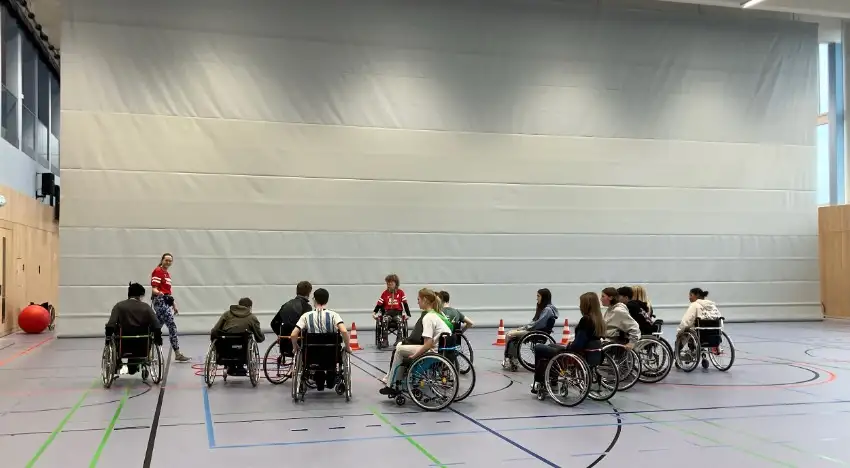 En el instituto alemán aprendieron a usar la silla de ruedas mientras jugaban al fútbol.