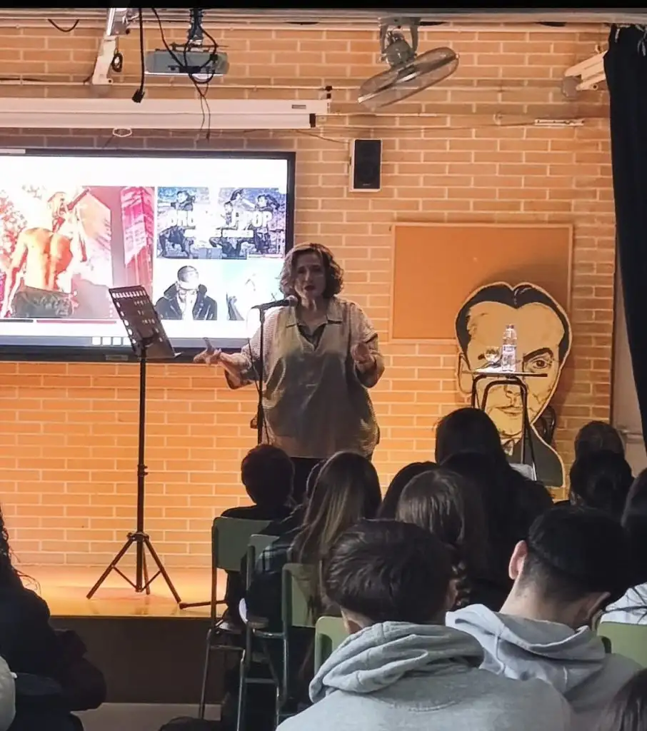 Durante el recital, Elena supo conectar con el alumnado al que transmitió su gran pasión por la poesía, que no solo debe ser leída, sino ser vivida y compartida.