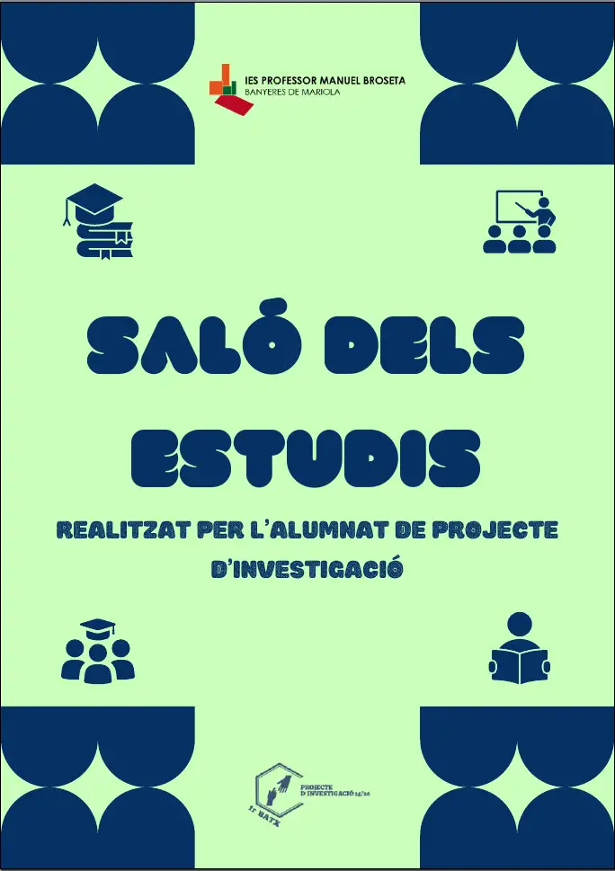El proper dilluns 30 de març tindrà lloc el Saló dels Estudis al vestíbul de l’institut. Aquest esdeveniment ha sigut planificat i organitzat per l’alumnat de 1r de Batxillerat de l’optativa de Projecte d’Investigació. En aquesta edició comptarem amb la participació de 13 exalumnes del centre, que compartiran la seua experiència acadèmica i professional.