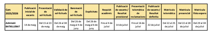 CALENDARIO ADMISIÓN ALUMNADO BACHILLERATO FASE ORDINARIA 2025-2026