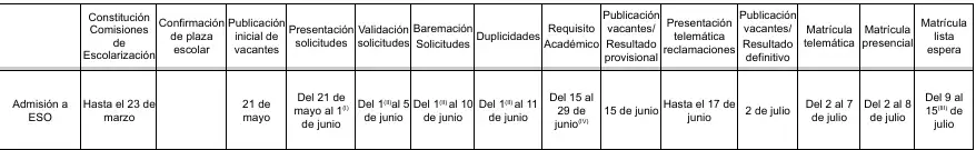 CALENDARIO ADMISIÓN ALUMNADO ESO FASE ORDINARIA 2025-2026