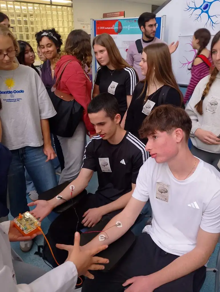 Primer hem assistit a una xarrada molt interessant sobre addiccions, descobrint com funcionen els circuits neuronals implicats i com afecta la conducta addictiva al cervell. Després, hem participat en tallers i activitats pràctiques on hem pogut explorar de prop el treball que realitzen els equips d’investigació, veure un cervell humà real, experimentar la conducció dels impulsos nerviosos, etc. Un matí ple de ciència que ens ha permés acostar-nos al fascinant món del cervell des de dins.