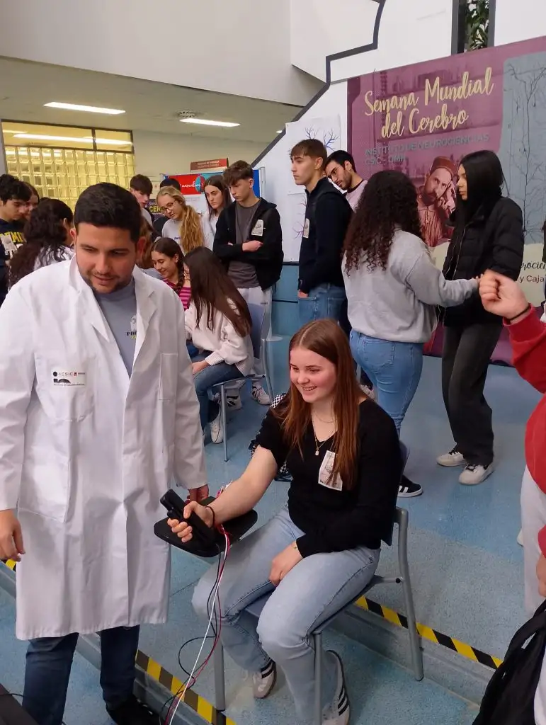 Hui l’alumnat de 1r de Batxillerat de Biologia i Biologia Humana ha visitat l’Institut de Neurociències d’Alacant amb motiu de la celebració de la Setmana Internacional del Cervell.
