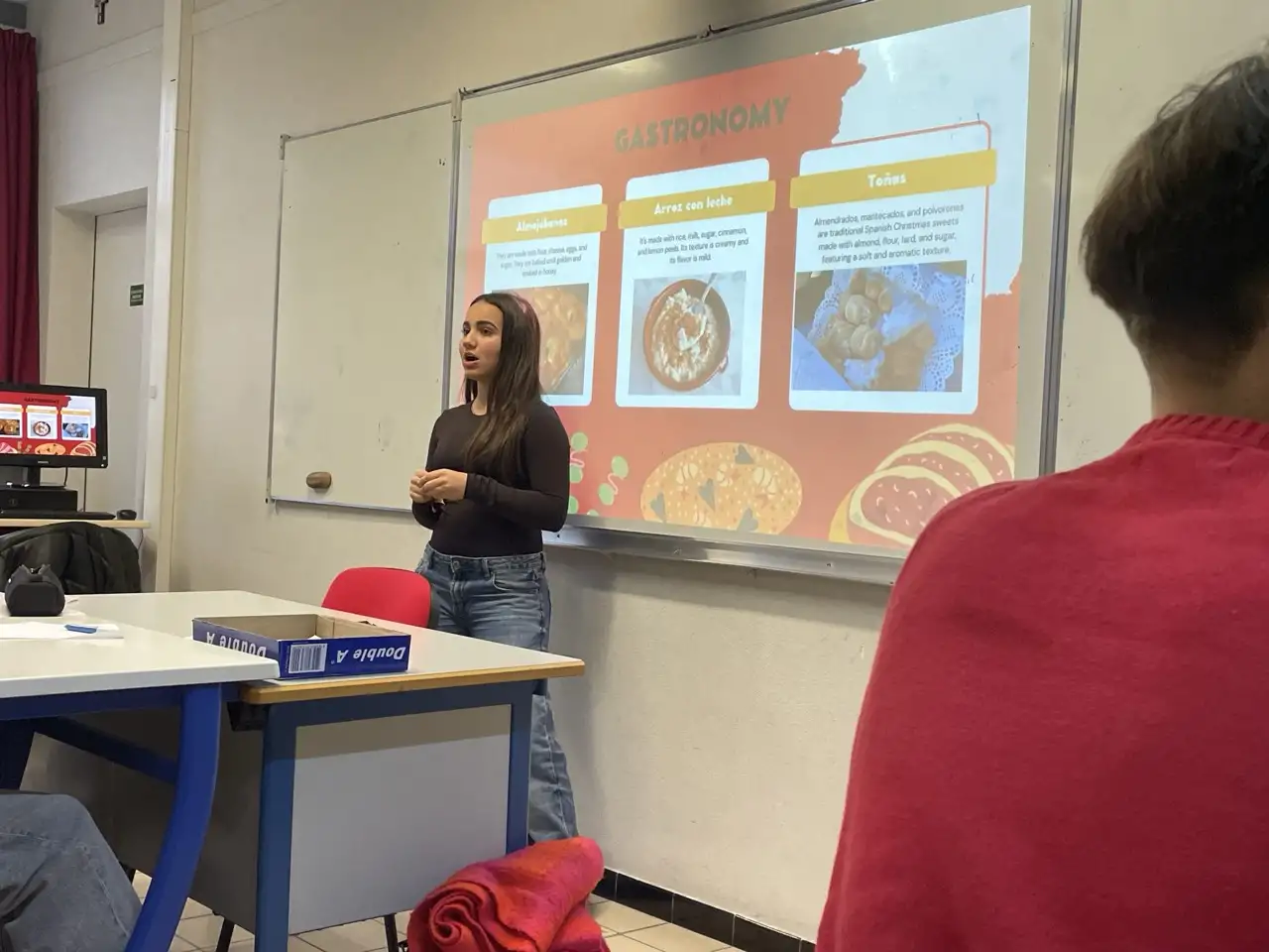 De vuelta al centro francés, nuestras alumnas presentaron a los estudiantes franceses la cultura de la Vega Baja en general y profundizaron en las fiestas y en la gastronomía de Rafal. Terminaron la presentación con una degustación de productos típicos como: tortilla de patatas, tortitas, aceitunas, polvorones, etc. que fue de gran agrado por los estudiantes franceses. Para terminar la jornada, también pudieron visitar los astilleros construidos por los nazis durante la Segunda Guerra Mundial para reparar su buques de guerra y los submarinos U-Bot y la impresionante industria naval de la ciudad.