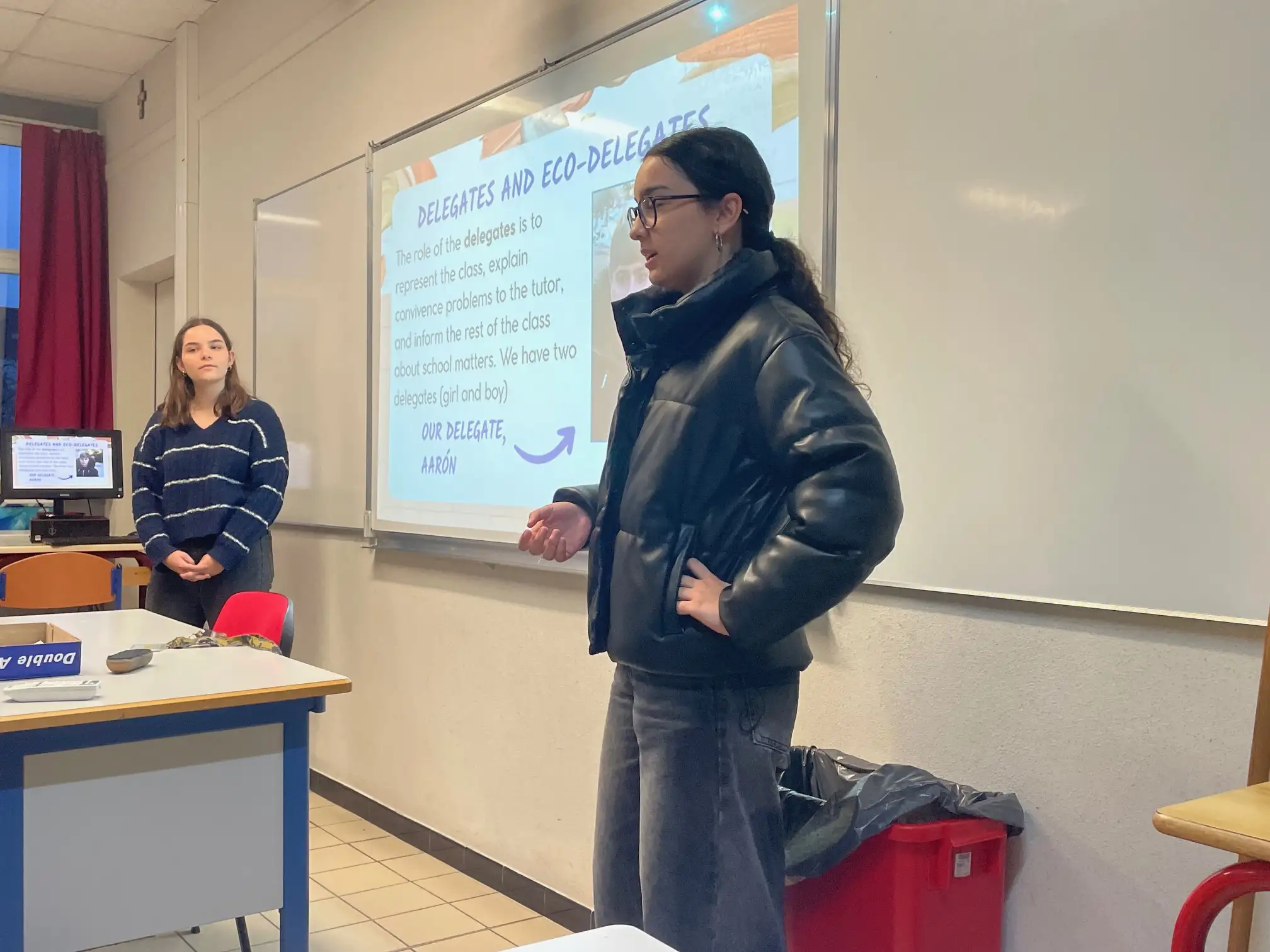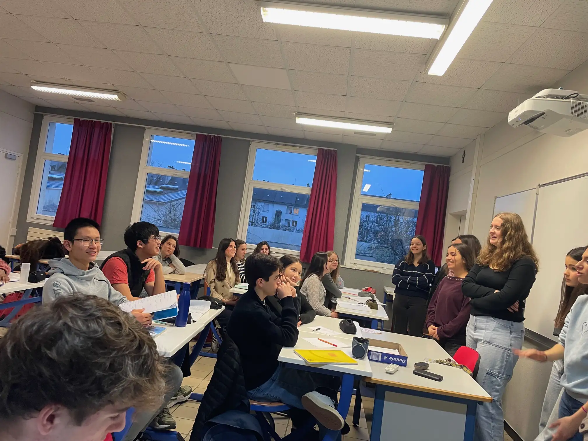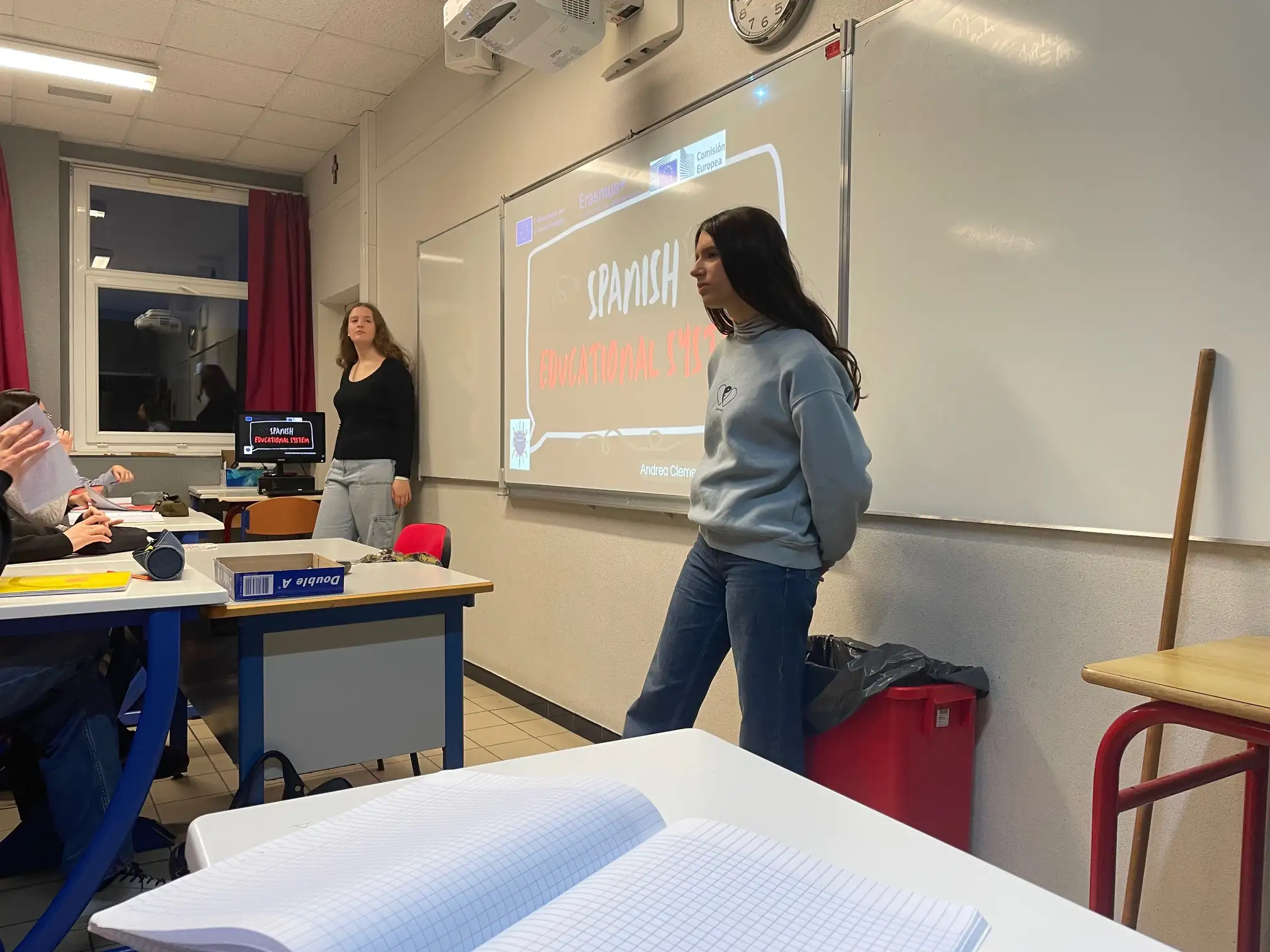 En la mañana de hoy, martes 27 de enero, las alumnas de Rafal que visitan la ciudad de Saint-Nazaire dentro del proyecto Erasmus+ Conéctate a Europa con igualdad, civismo y oportunidades digitales han continuado haciendo nuevas exposiciones a los estudiantes franceses de español. Durante esta jornada, han hablado sobre el sistema educativo de España en general, han detallado las actividades extraescolares y los talleres que se llevan a cabo en el IES Rafal y han explicado los objetivos de nuestro proyecto Erasmus+ que, en esta ocasión, nos han conducido hasta Saint-Nazaire.