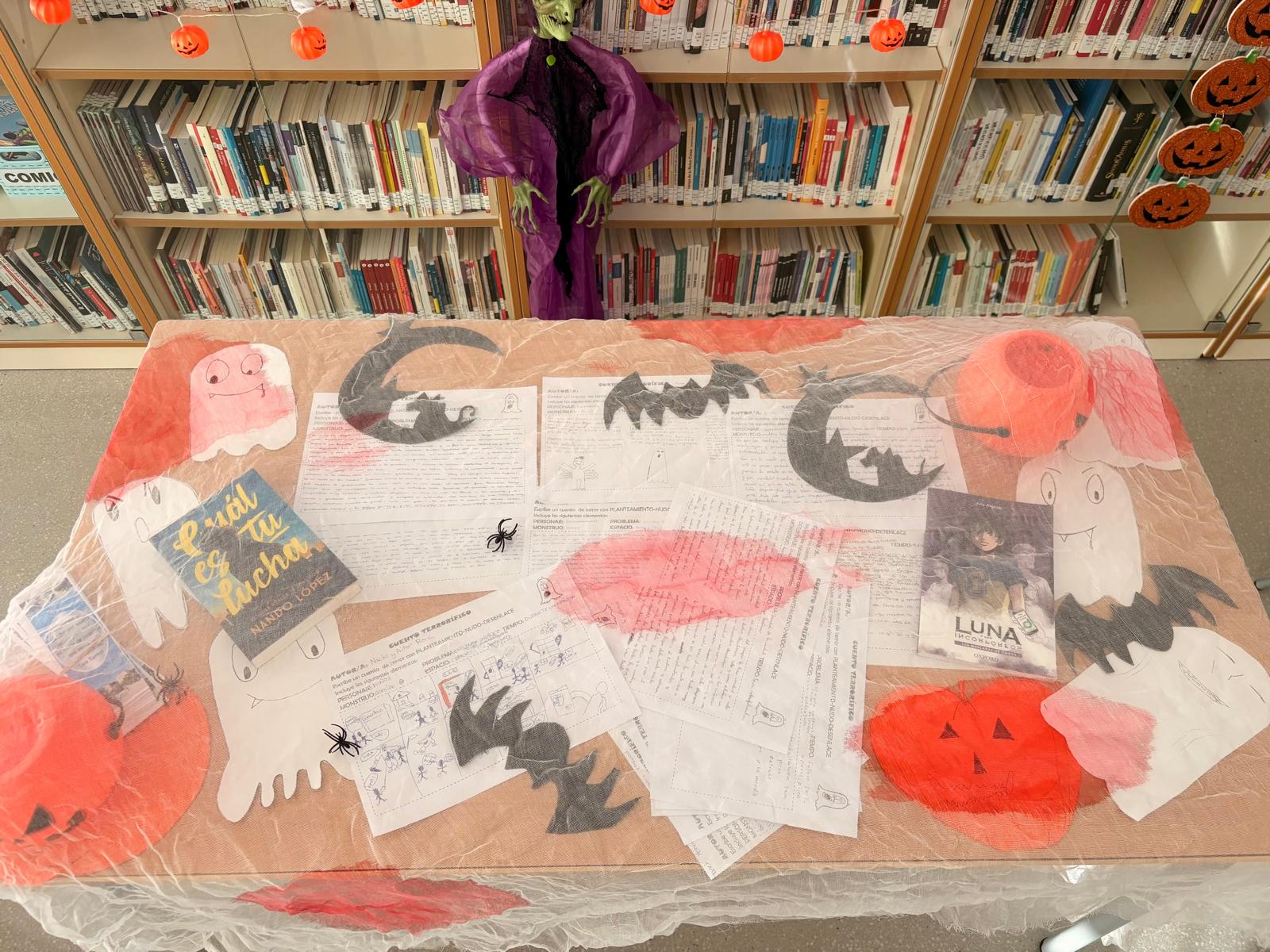 - Lectura de relatos espeluznantes: cada día, los estudiantes han disfrutado de historias de terror seleccionadas por las profesoras de Lengua Castellana y Literatura, creando un ambiente único en los recreos.