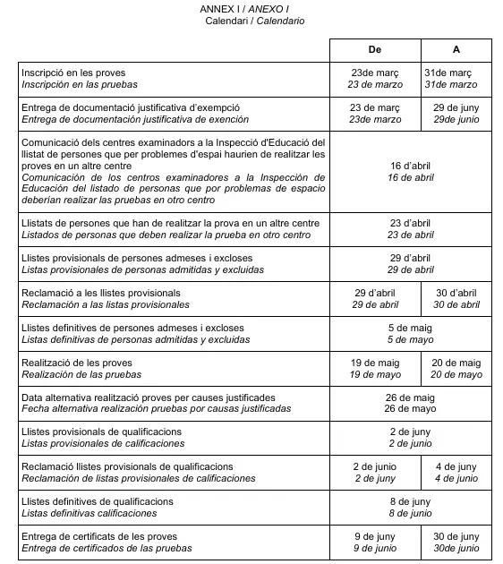 Calendari Proves d’Accés 2026 (+info)