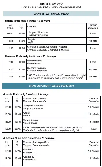 - Proves de grau mitjà: tindre 17 anys o complir-los durant l’any 2026.