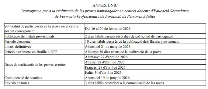 | EXAMEN ANGLÉS | 28 d’abril de 2026, a les 11.00 hores |
