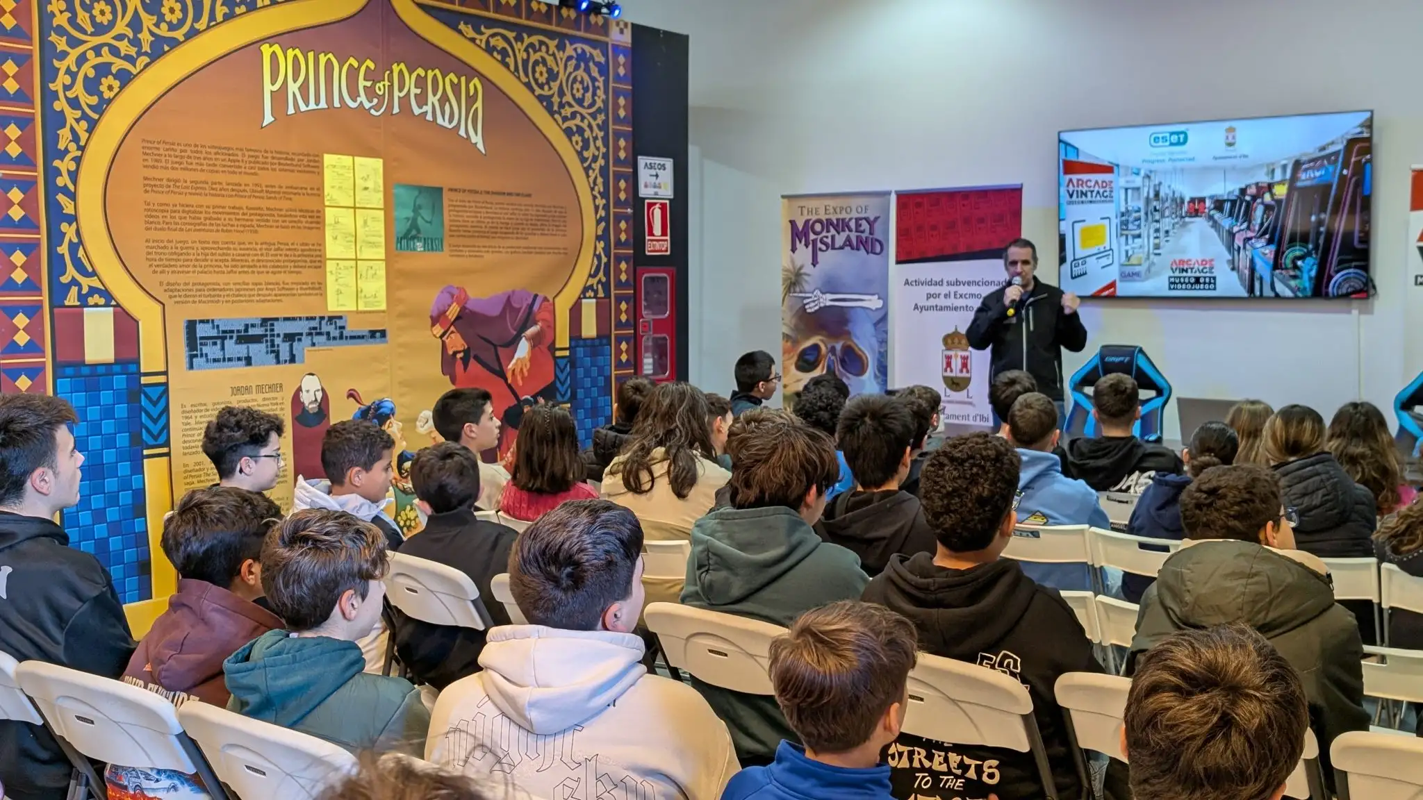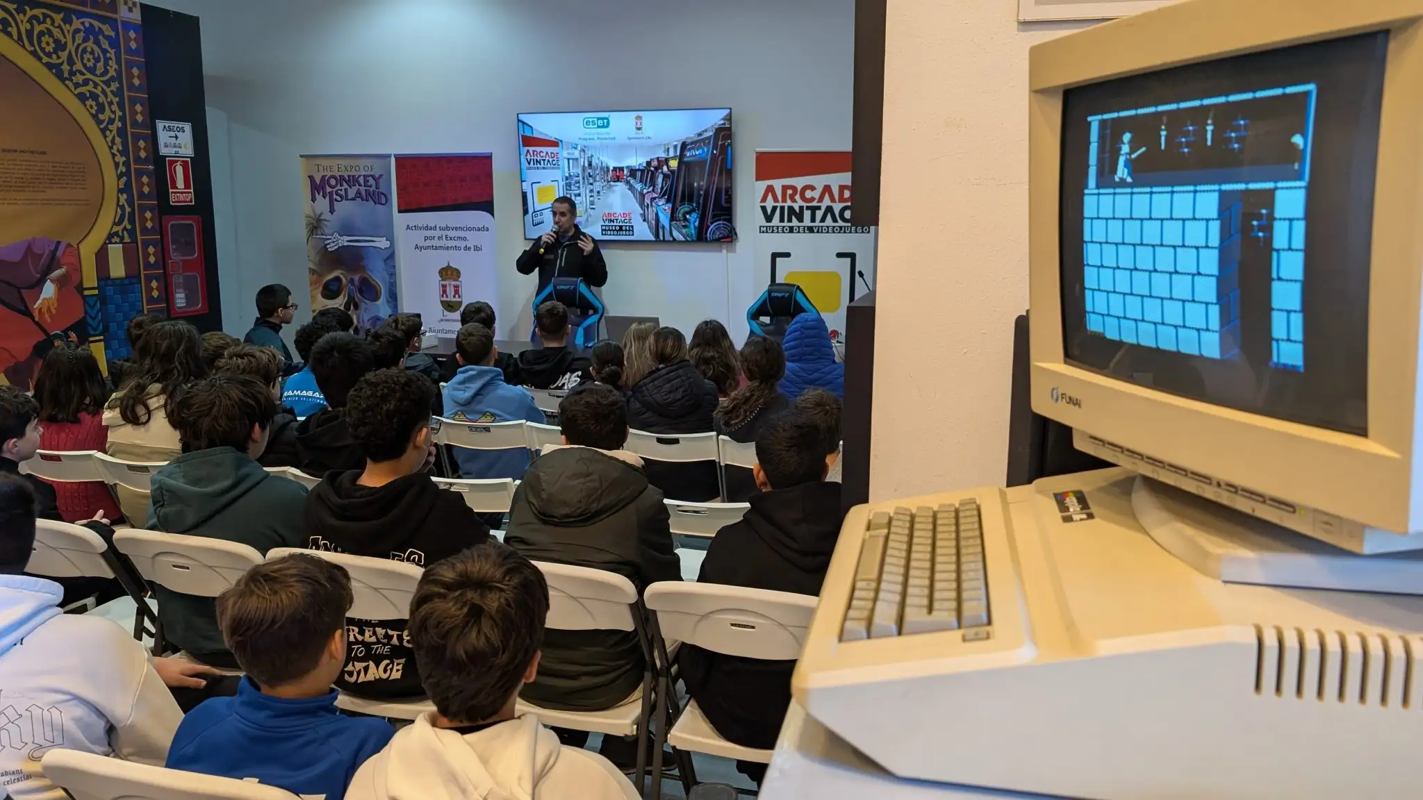Desde el departamento de Informática se organizó para el 29 de enero una divertida excursión al Museo del Videojuego Arcade Vintage de Ibi (Alicante), primer museo interactivo del videojuego de España. Gran parte del alumnado de 1º ESO que tienen la asignatura de informática, y los que cursan la asignatura de optativa «Programación, inteligencia artificial y robótica» de 2º ESO disfrutaron mucho descubriendo cómo ha sido la evolución de los videojuegos.
