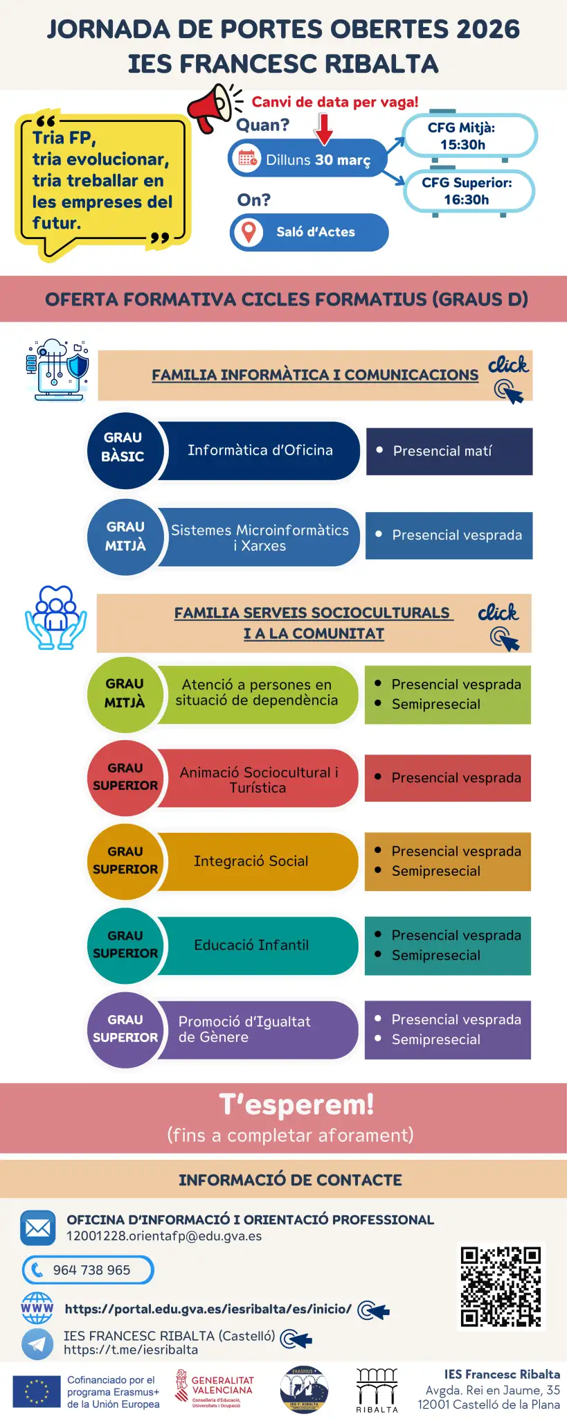 CANVI DE DATA: Jornades de Portes Obertes de Cicles