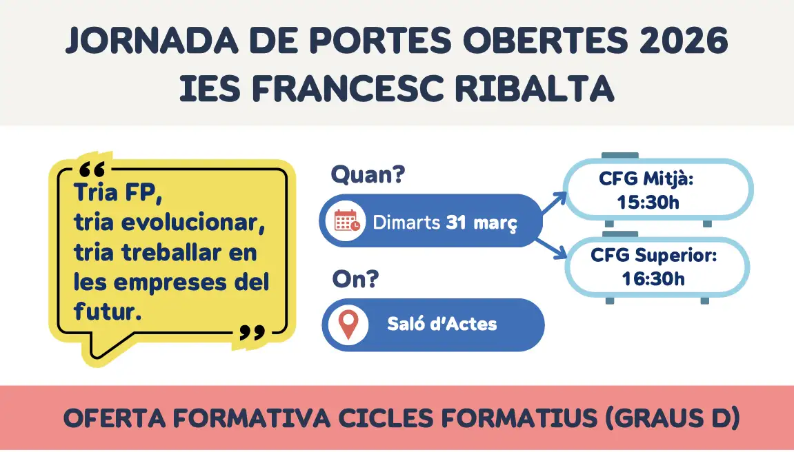 Invitació a les Jornades Portes Obertes IES Francesc Ribalta (Cicles Formatius)