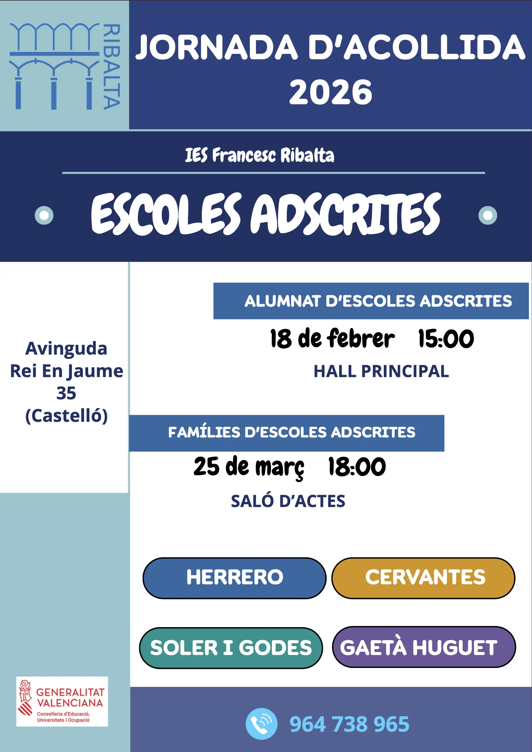 Amb l’objectiu que l’alumnat i les famílies de les escoles adscrites conegueu l’IES Ribalta us esperem en les dates indicades.