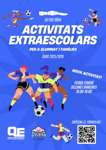 Presentem l’oferta d’activitats extraescolars per al proper curs al nostre centre. A l’oferta d’enguany tenim activitats organitzades per Quart per l’Esport per a l’alumnat i també per a les famílies.