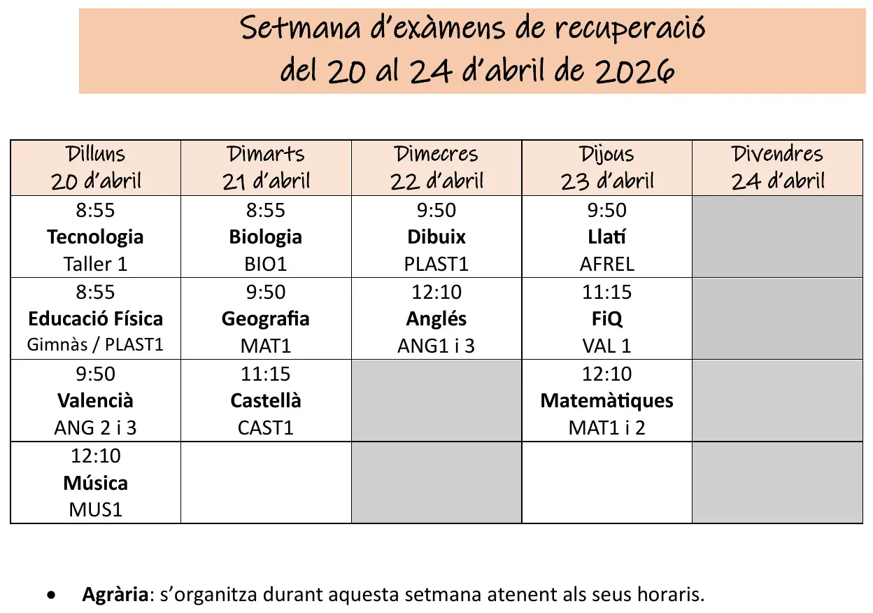 Ja tenim el calendari d’exàmens de recuperació de les assignatures pendents de cursos passats. Ànim!
