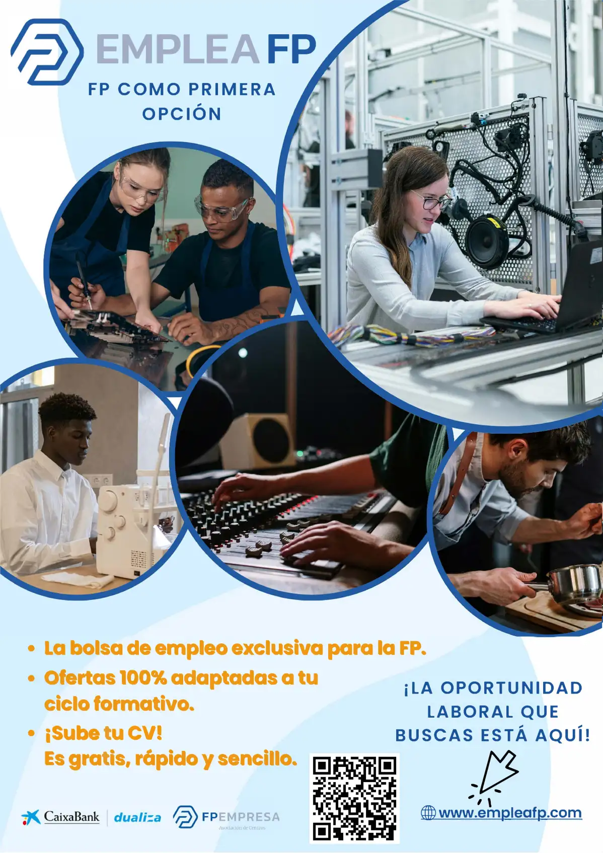 EmpleaFP és la borsa d’ocupació referent de la Formació Professional. Podràs trobar els candidats o candidates amb la formació adequada a les teues necessitats. EmpleaFP és un projecte de l’associació FPEmpresa de la qual forma part l’IES Salvador Gadea. L’objectiu de FPEmpresa és millorar la formació professional.