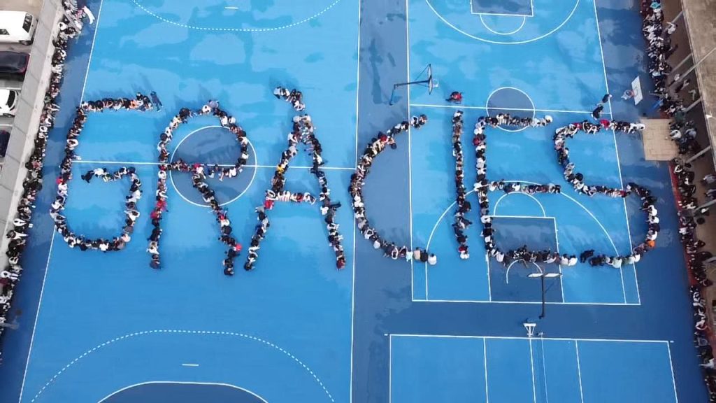 Todo comenzó en el patio, donde alumnado y profesorado del centro nos unimos en una gran cadena humana formando la palabra GRACIAS. A continuación, se leyó un texto conmemorativo por megafonía y se guardó un minuto de silencio en recuerdo de las víctimas de la DANA.