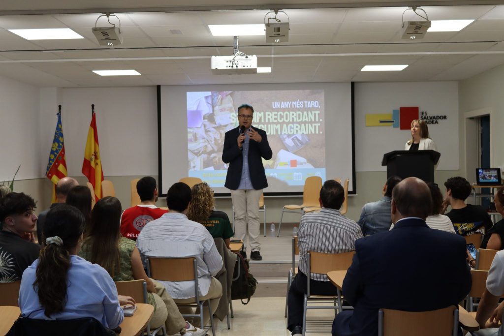 La jornada de la mañana concluyó con la entrega de diplomas de agradecimiento y la visita a la exposición fotográfica “Un año después de la DANA”, que recoge imágenes aportadas por el alumnado sobre la riada, así como sobre las labores de limpieza y reconstrucción del centro.