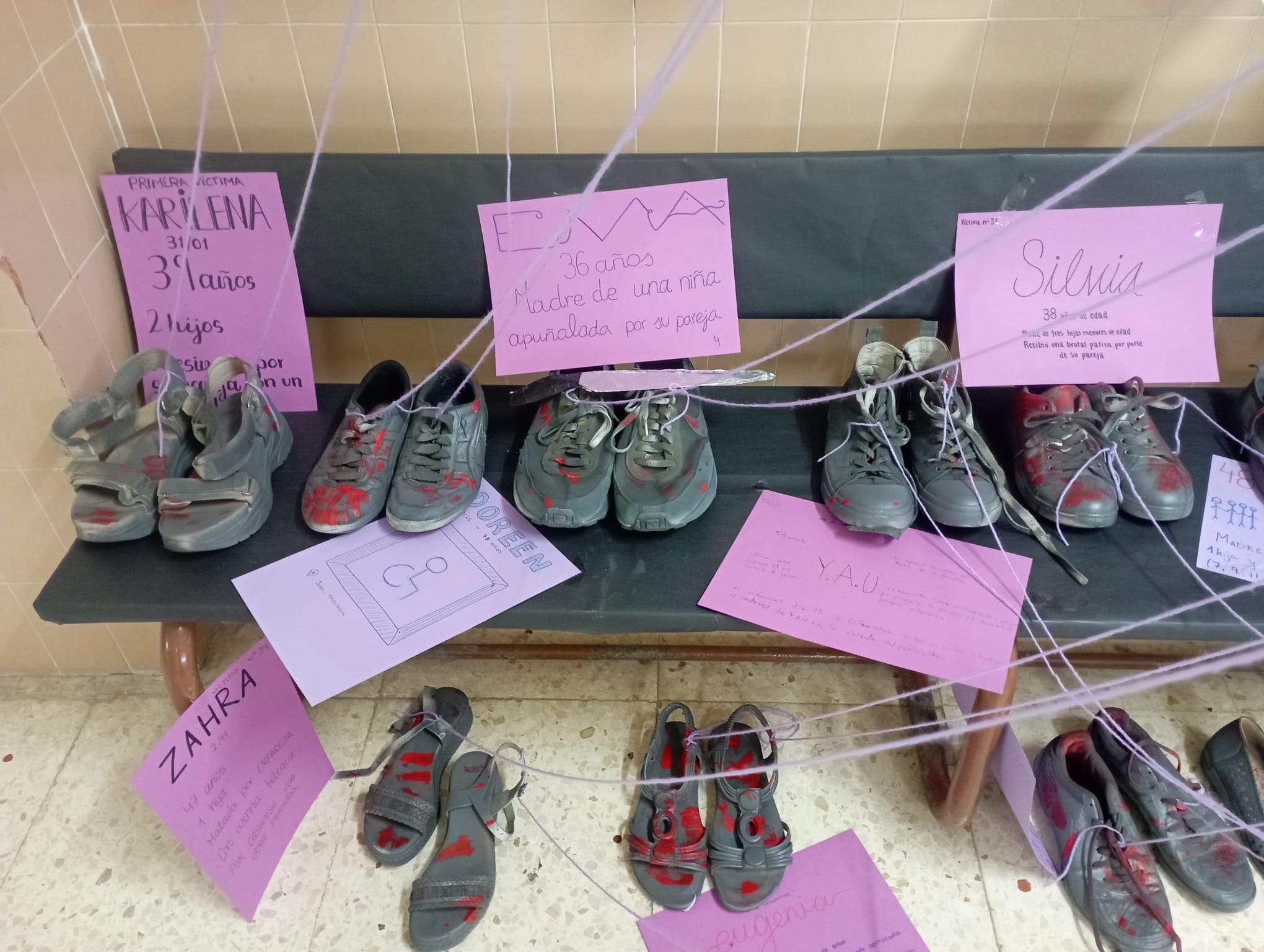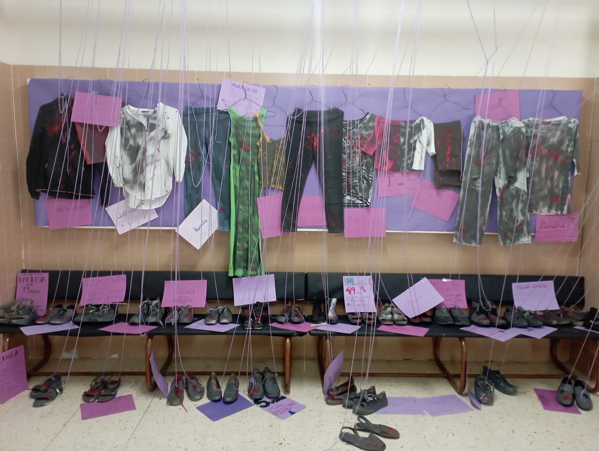 El pasado martes, 25 de noviembre, conmemoramos el Día Internacional Contra la Violencia de Género, para ello hemos realizado distintas actividades de concienciación en las tutorías, que, en el caso de 1º y 3º de la ESO, se han desarrollado en el marco del programa TEI. Además, el alumnado del Punto Violeta y el de Artes Escénicas ha realizado una tarea de investigación sobre cada mujer asesinada durante este año (por su pareja o expareja) y ha utilizado zapatos y ropa vieja, como representación de las mismas en una instalación que puede visitarse en el hall del centro.