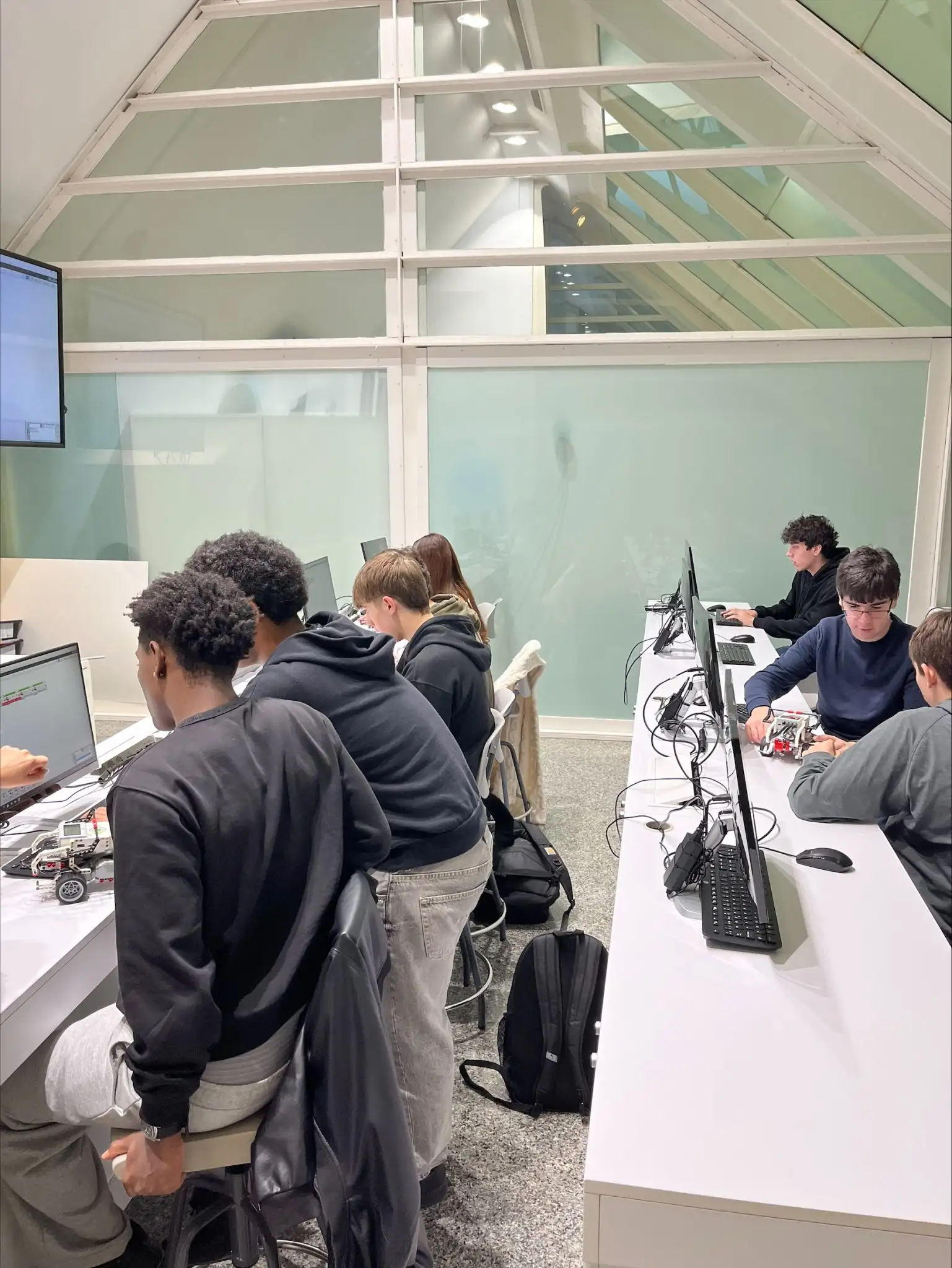 L’alumnat de primer de batxillerat de l’assignatura d’informàtica ha anat al taller de robots de la Ciutat de les ciències. Han programat robots per a resoldre unes missions.